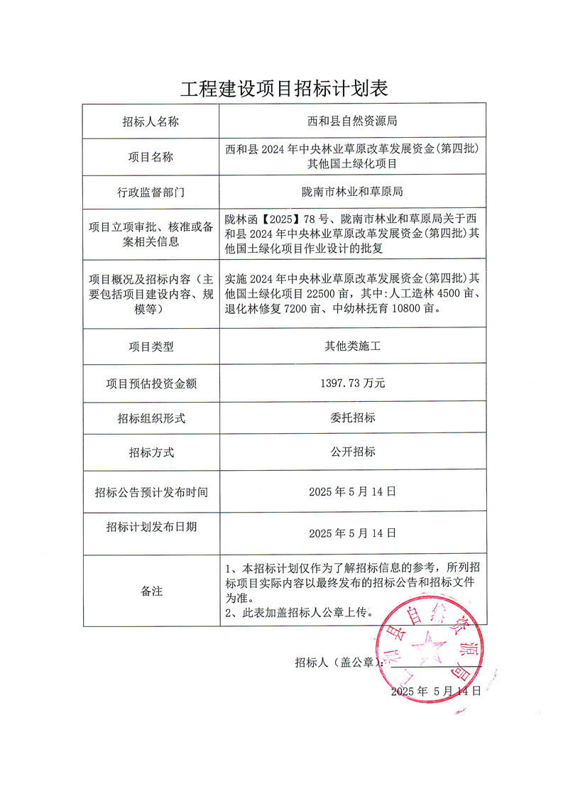 西和縣2024年中央林業(yè)草原改革發(fā)展資金(第四批)其他國(guó)土綠化項(xiàng)目