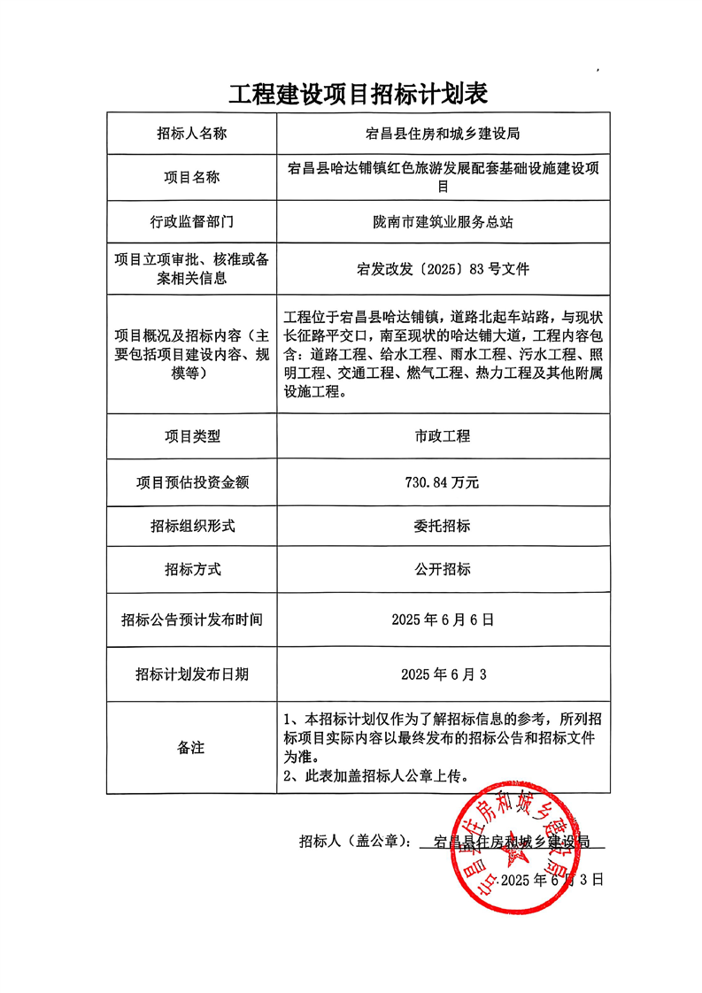 宕昌縣哈達(dá)鋪鎮(zhèn)紅色旅游發(fā)展配套基礎(chǔ)設(shè)施建設(shè)項(xiàng)目