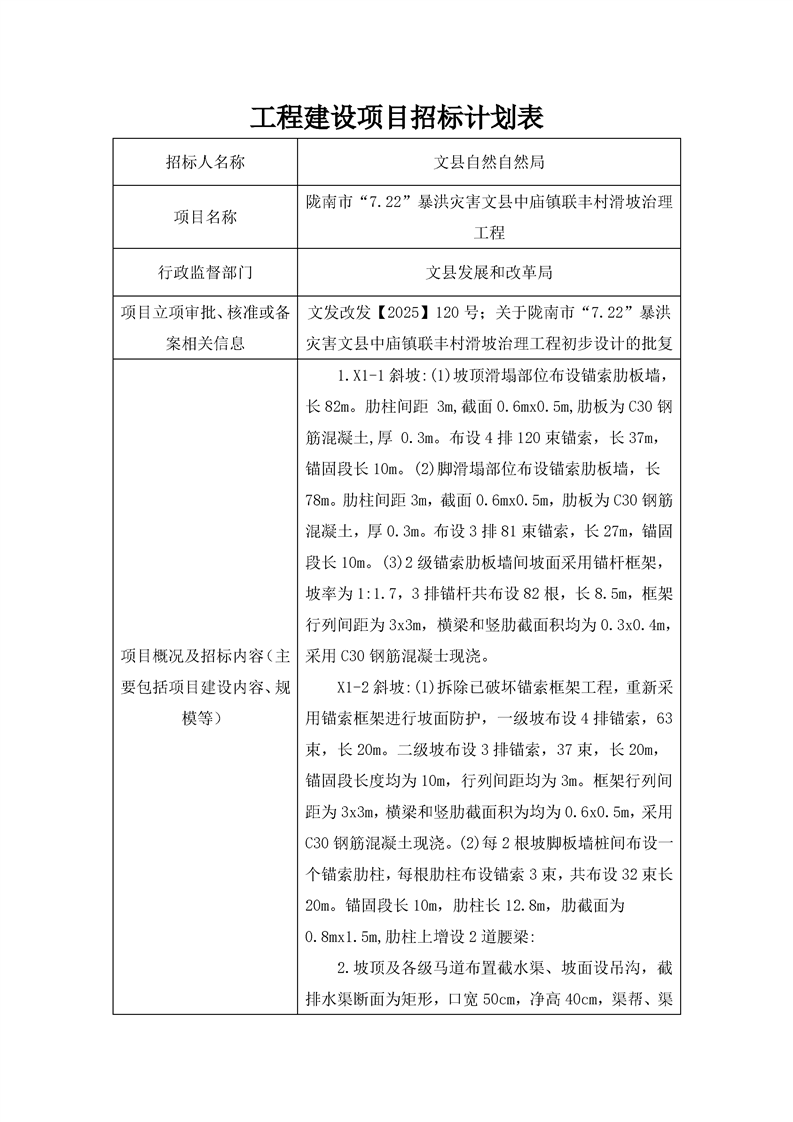隴南市“7.22”暴洪災(zāi)害文縣中廟鎮(zhèn)聯(lián)豐村滑坡治理工程招標(biāo)計劃表.pdf