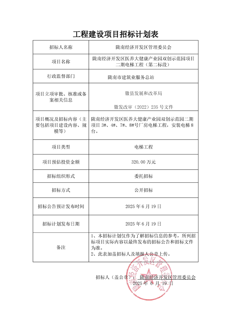 隴南經(jīng)濟(jì)開發(fā)區(qū)醫(yī)養(yǎng)大健康產(chǎn)業(yè)園雙創(chuàng)示范園項(xiàng)目二期電梯工程(第二標(biāo)段)