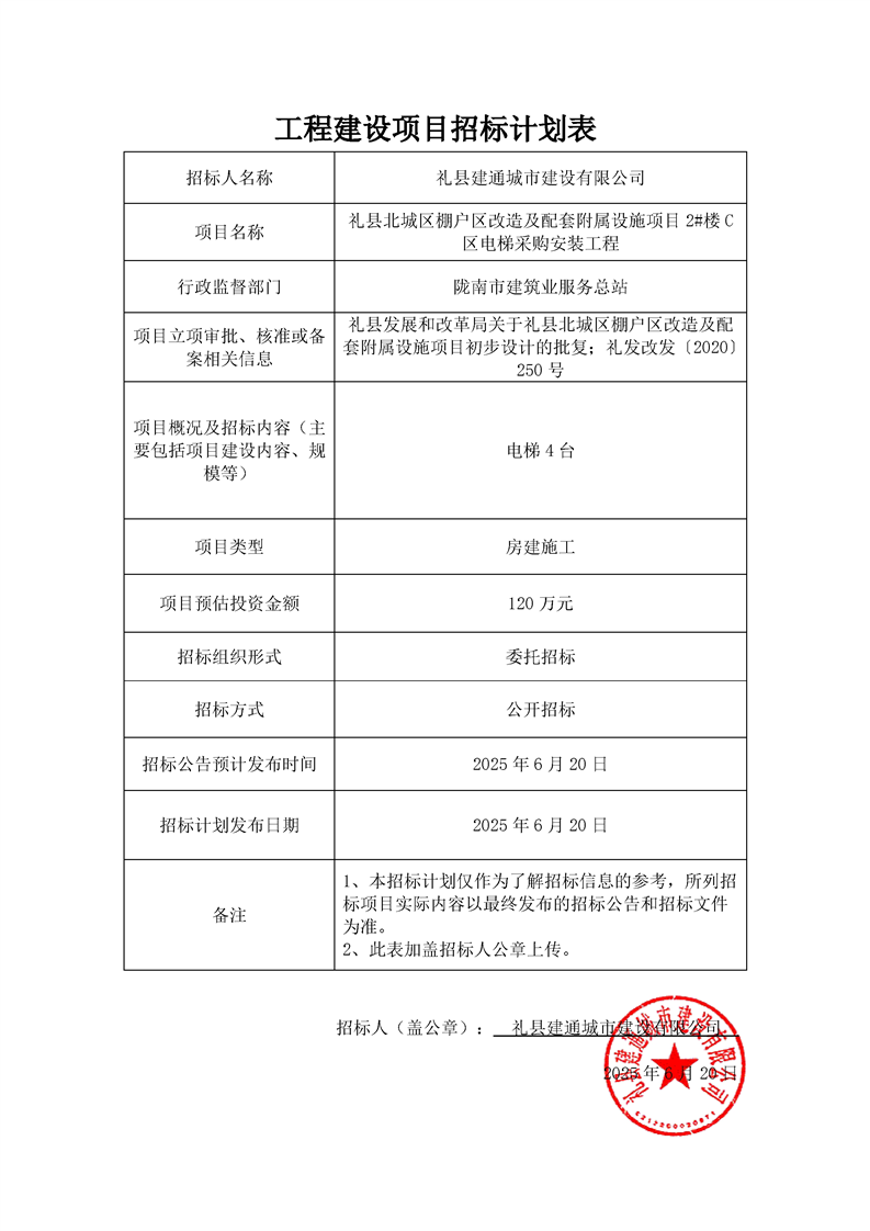 禮縣北城區(qū)棚戶區(qū)改造及配套附屬設(shè)施項(xiàng)目2#樓C區(qū)電梯采購(gòu)安裝工程