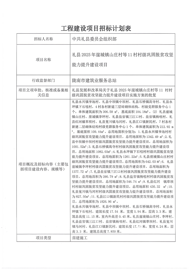 禮縣2025年崖城鎮(zhèn)山莊村等11村村級鞏固脫貧攻堅能力提升建設(shè)項目