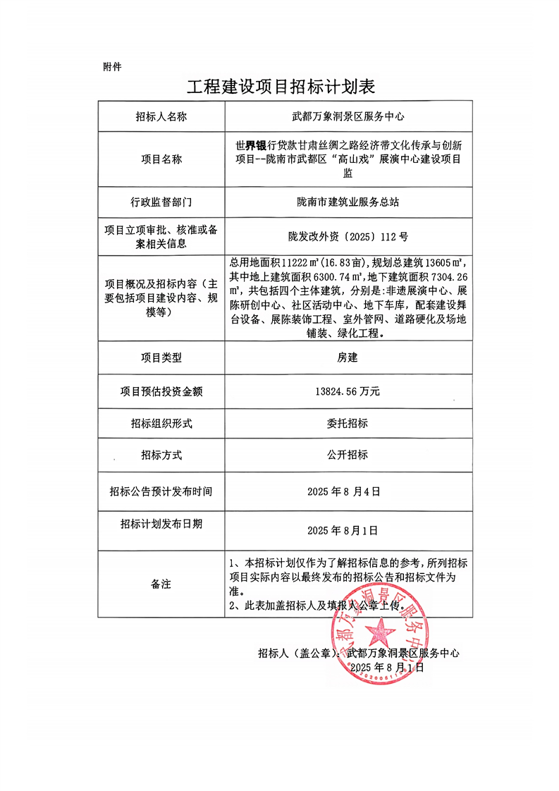 世界銀行貸款甘肅絲綢之路經(jīng)濟(jì)帶文化傳承與創(chuàng)新項(xiàng)目--隴南市武都區(qū)“高山戲”展演中心建設(shè)項(xiàng)目監(jiān)理