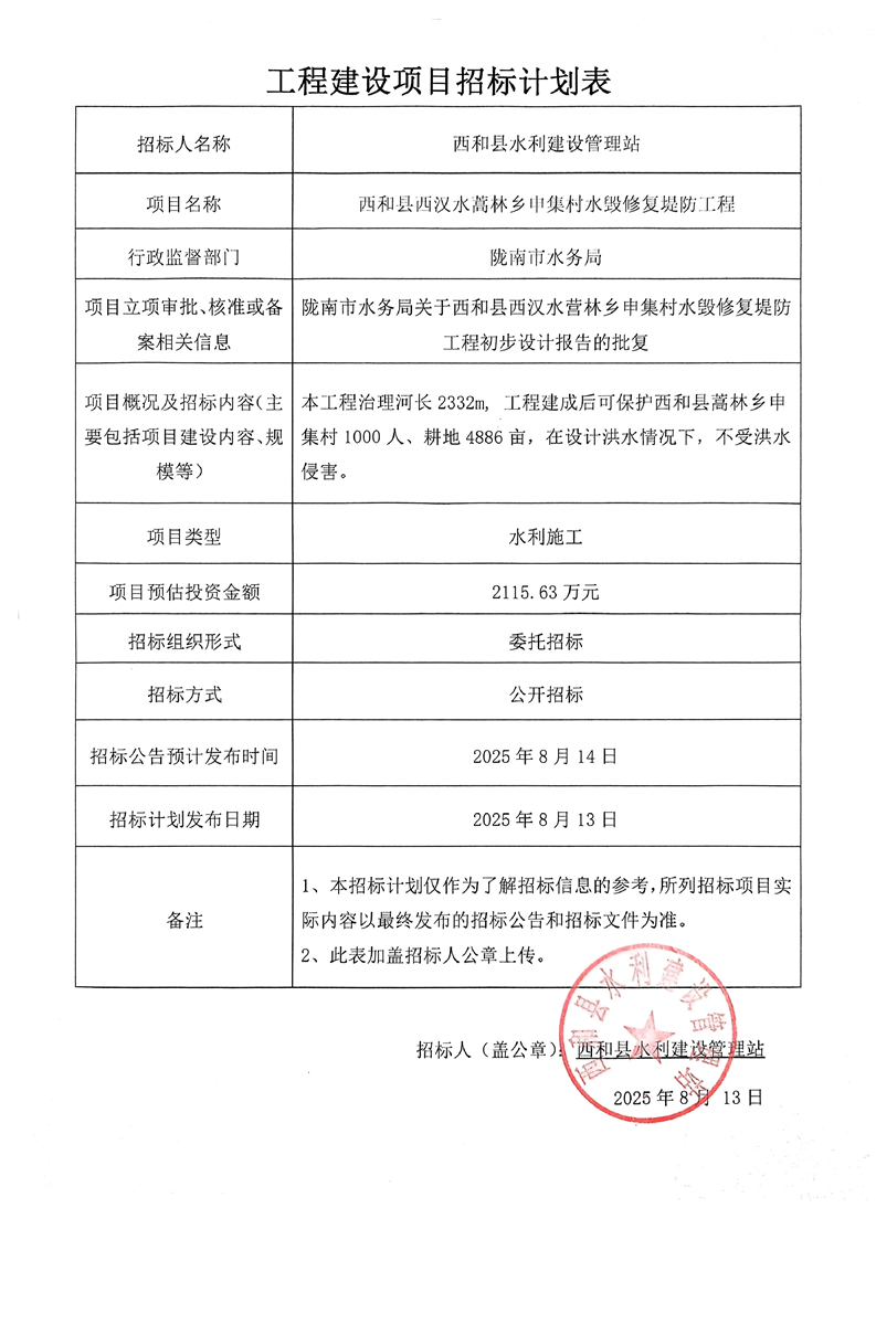西和縣西漢水蒿林鄉(xiāng)申集村水毀修復堤防工程