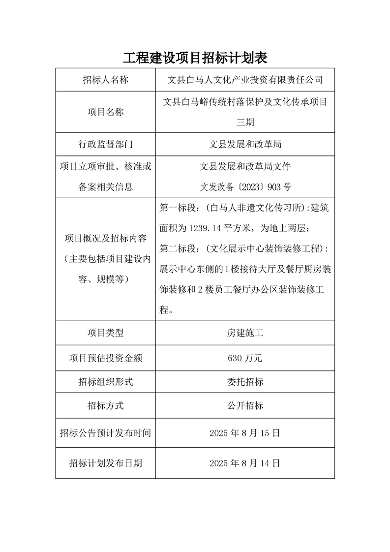 文縣白馬峪傳統(tǒng)村落保護及文化傳承項目三期