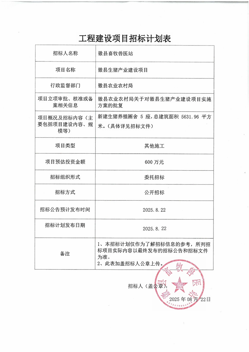 徽縣生豬產(chǎn)業(yè)建設(shè)項(xiàng)目