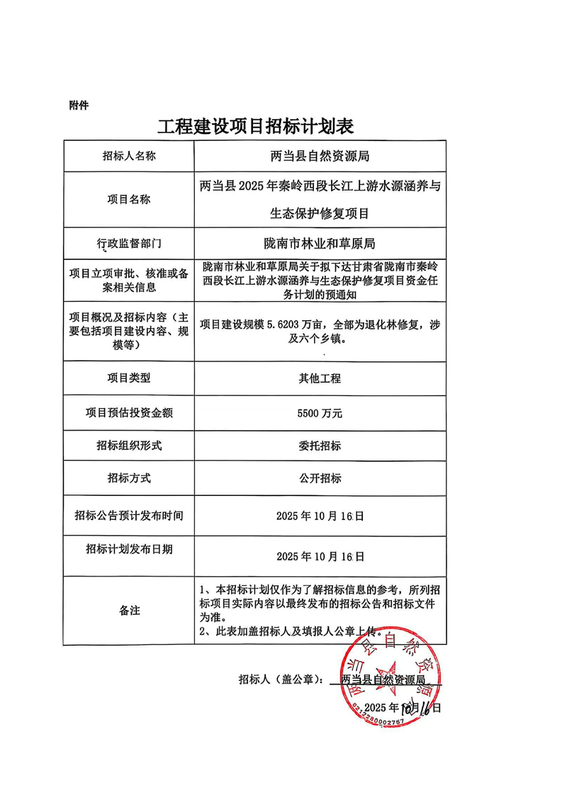 兩當縣2025年秦嶺西段長江上游水源涵養(yǎng)與生態(tài)保護修復項目