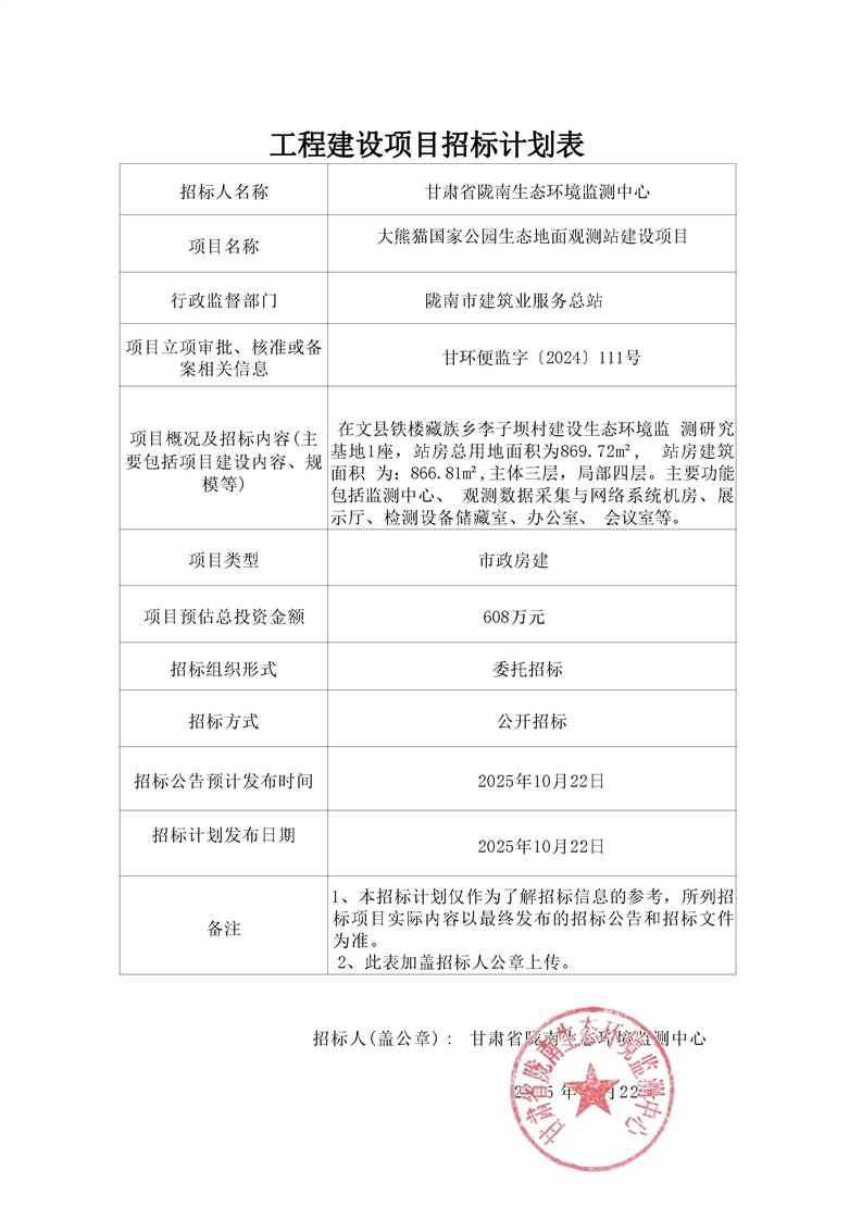 大熊貓國家公園生態(tài)地面觀測站建設項目