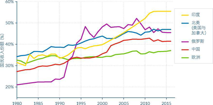 資料來源:時間財富與收入不平等數(shù)據(jù)庫(WID world)。世界不平均報告2018(WIR2018.wid.world)