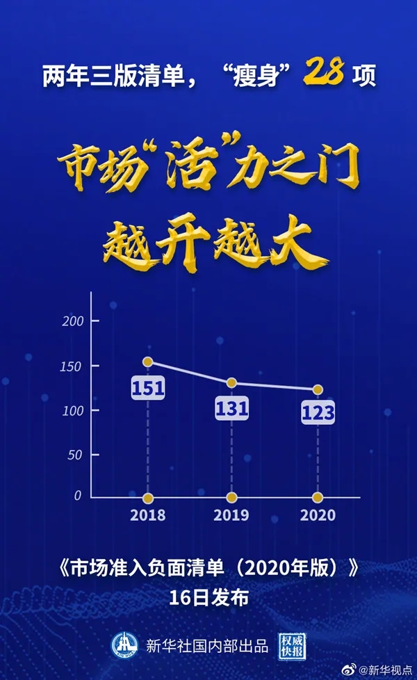 國家發(fā)展改革委、商務(wù)部16日公布《市場(chǎng)準(zhǔn)入負(fù)面清單(2020年版)》。新版清單直接放開“森林資源資產(chǎn)評(píng)估項(xiàng)目核準(zhǔn)”等措施,刪除“證券公司董事、監(jiān)事、高級(jí)管理人員任職資格核準(zhǔn)”等措施,清單事項(xiàng)縮減至123項(xiàng),比2019年版清單再減8項(xiàng)。(記者安蓓 海報(bào)設(shè)計(jì):張惠慧 張晨光)