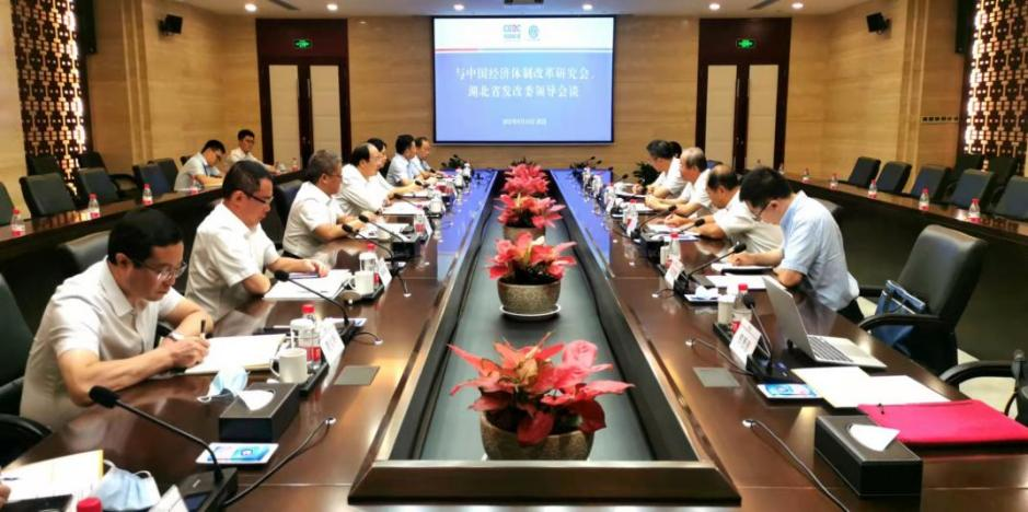 調(diào)研期間,彭森會長一行在湖北省發(fā)改委組織召開專題座談會。省發(fā)改委、經(jīng)信廳、財(cái)政廳、生態(tài)環(huán)境廳、國資委、市場監(jiān)管局、武漢市發(fā)改委以及省文化旅游投資集團(tuán)有限公司,武漢商貿(mào)國有控股集團(tuán)有限公司等單位負(fù)責(zé)同志參加座談會并介紹相關(guān)情況。