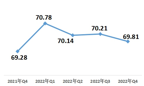 2月3日,中國經(jīng)濟體制改革研究會在京發(fā)布《2022年第四季度改革熱度第三方評估報告》。報告顯示,2022年第四季度改革熱度指數(shù)為69.81,比上一季度下降0.4,比去年同期增長0.53。