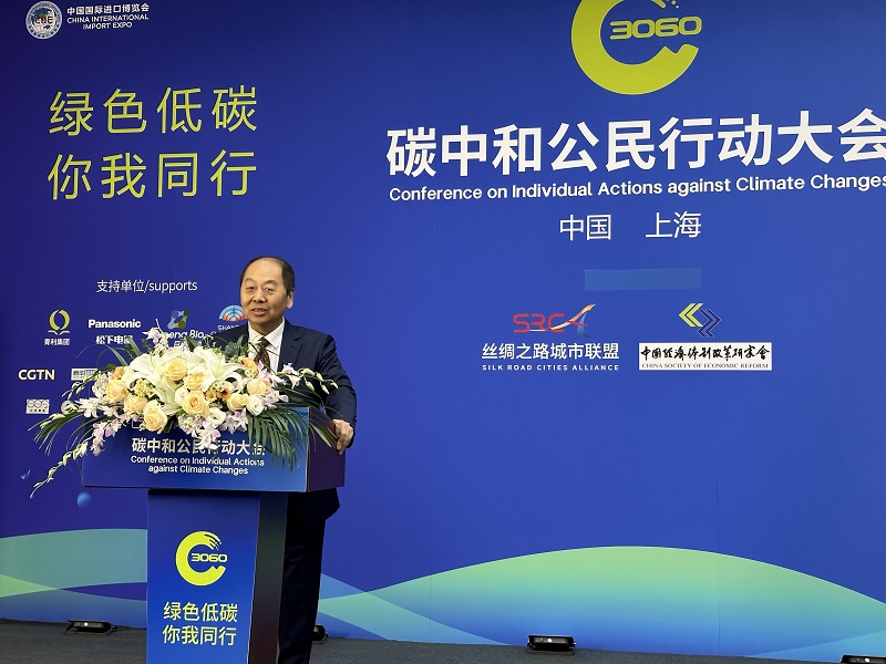 2023年11月5日,習(xí)近平主席致信、李強總理出席并發(fā)表主旨演講的第六屆中國國際進(jìn)口博覽會在上海國際會展中心開幕。11月6日下午,由我會作為支持單位之一,列入第六屆中國國際進(jìn)口博覽會重要配套活動的第三屆碳中和公民行動大會在主場館上海國際會展中心成功舉辦。出席該活動的我會會長彭森發(fā)表致辭,我會常務(wù)副會長兼秘書長趙艾作主旨演講,我會副秘書長、中國經(jīng)濟(jì)體制改革雜志社社長潘治宏主持有關(guān)圓桌論壇,我會科研部主任南儲鑫在有關(guān)圓桌論壇作專題發(fā)言。該活動由絲綢之路城市聯(lián)盟等單位主辦,絲綢之路城市聯(lián)盟創(chuàng)始人宋榮華主持大會。